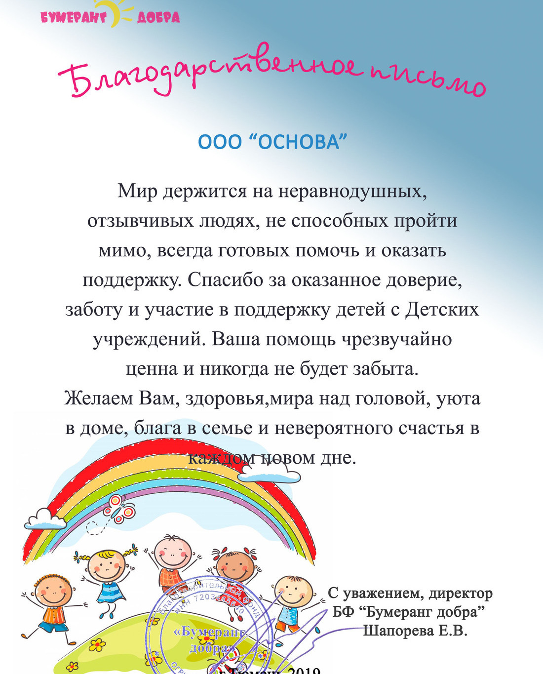 Именно в компании "Основа" мы нашли то, что искали. Нам оказали полную юридическую поддержку и понятную исчерпывающую консультацию. Прозрачность работы и уровень компетенции сотрудников впечатляют! К тому же сразу чувствуется хорошее отношение к каждому клиенту. Мы окончательно остановили свой выбор именно на этой фирме, и будем работать с ними дальше. Спасибо еще раз!